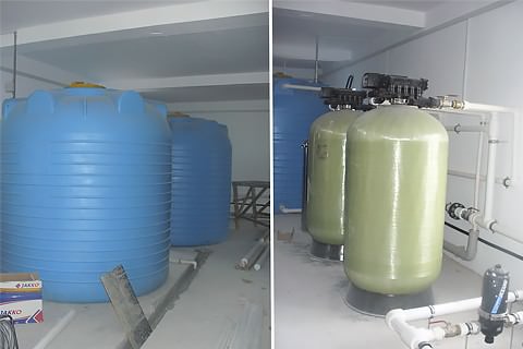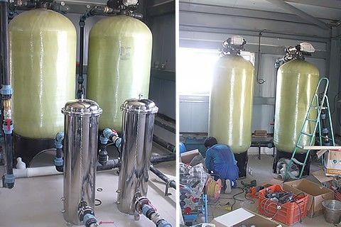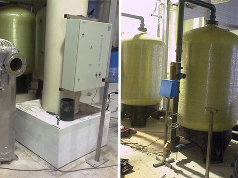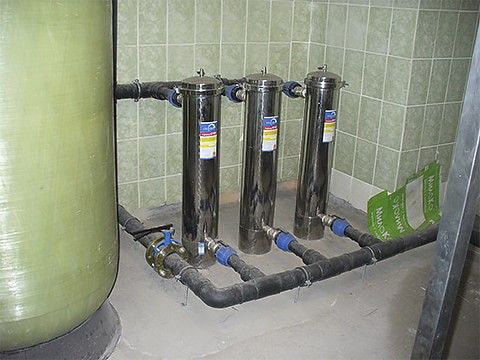 Поставлена предочистка на дисковых фильтрах Azud и мешочного типа Гейзер 8Ч. Умягчители, угольные фильтры Triplex состоящие из 3-х фильтров работающих параллельно и непрерывно. Установка обеззараживания воды ОДВ 100