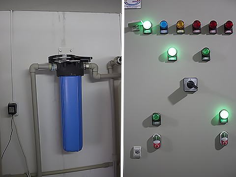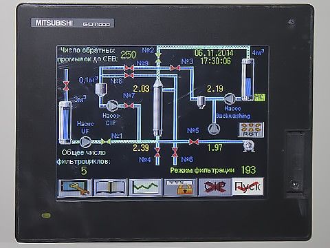 Система работает автоматически. Управляется с тач-панели, на которой видны все процессы. Постфильтры также работают автоматически и самостоятельно выходят на регенерацию и промывку