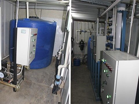 В каждой станции ставилась предочистка в зависимости от исходной воды и система обратного осмоса, так как требования к качеству воды для паровых котлов очень жесткие. В среднем производительность систем варьировалась в зависимости от нагрузки сервисных центров по пропускной способности обслуживания локомотивов и составляла от 0,5 до 2 м3/ч