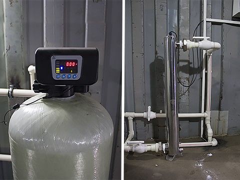 Поставлена предочистка на дисковых фильтрах Azud Modular 300 и мешочного типа Гейзер 8Ч. Автоматические фильтр умягчитель. Автоматический угольный фильтр системы Twin, состоящий из 2-х фильтров работающих параллельно и непрерывно. Установка обеззараживания воды ОДВ 30